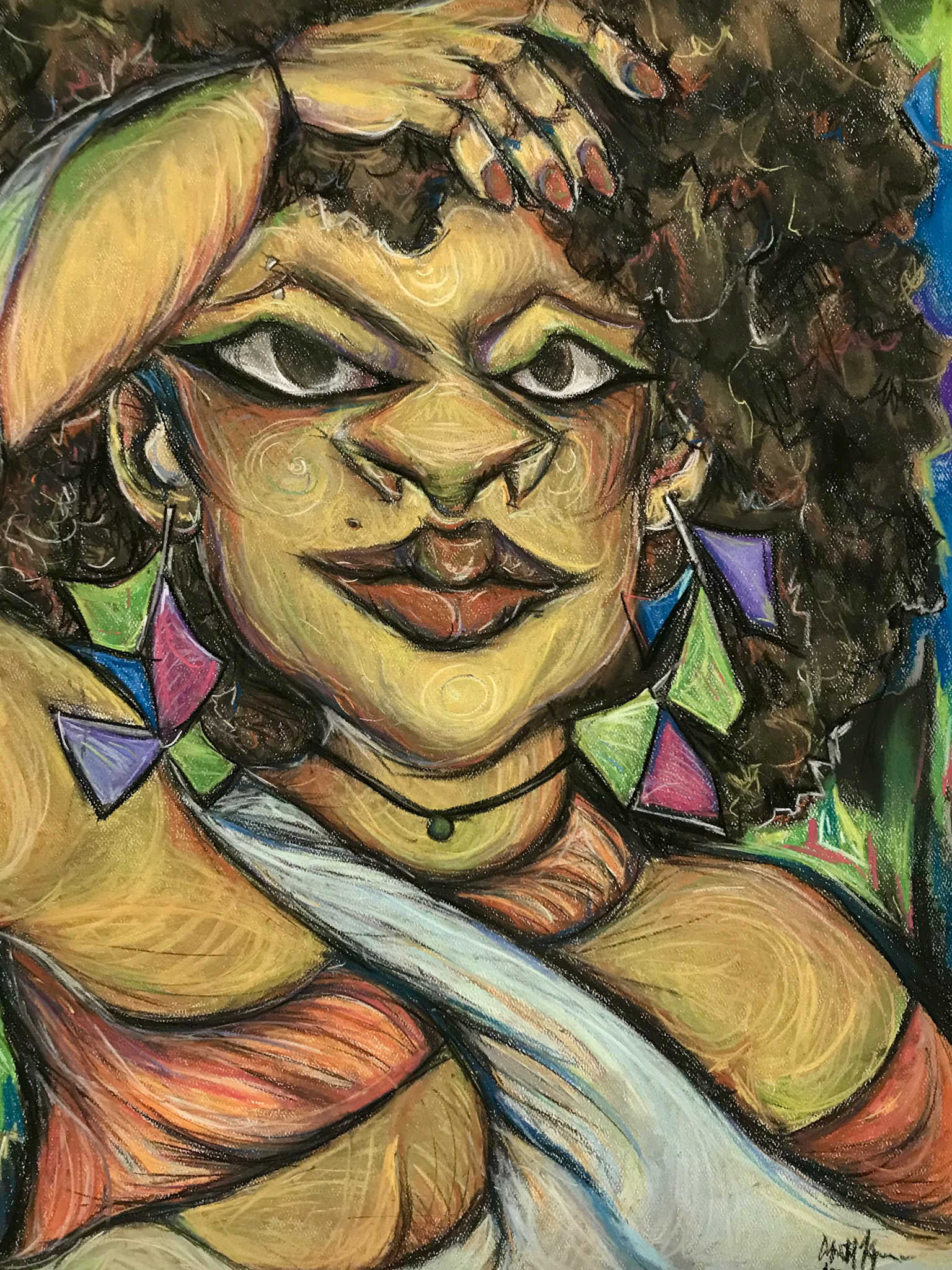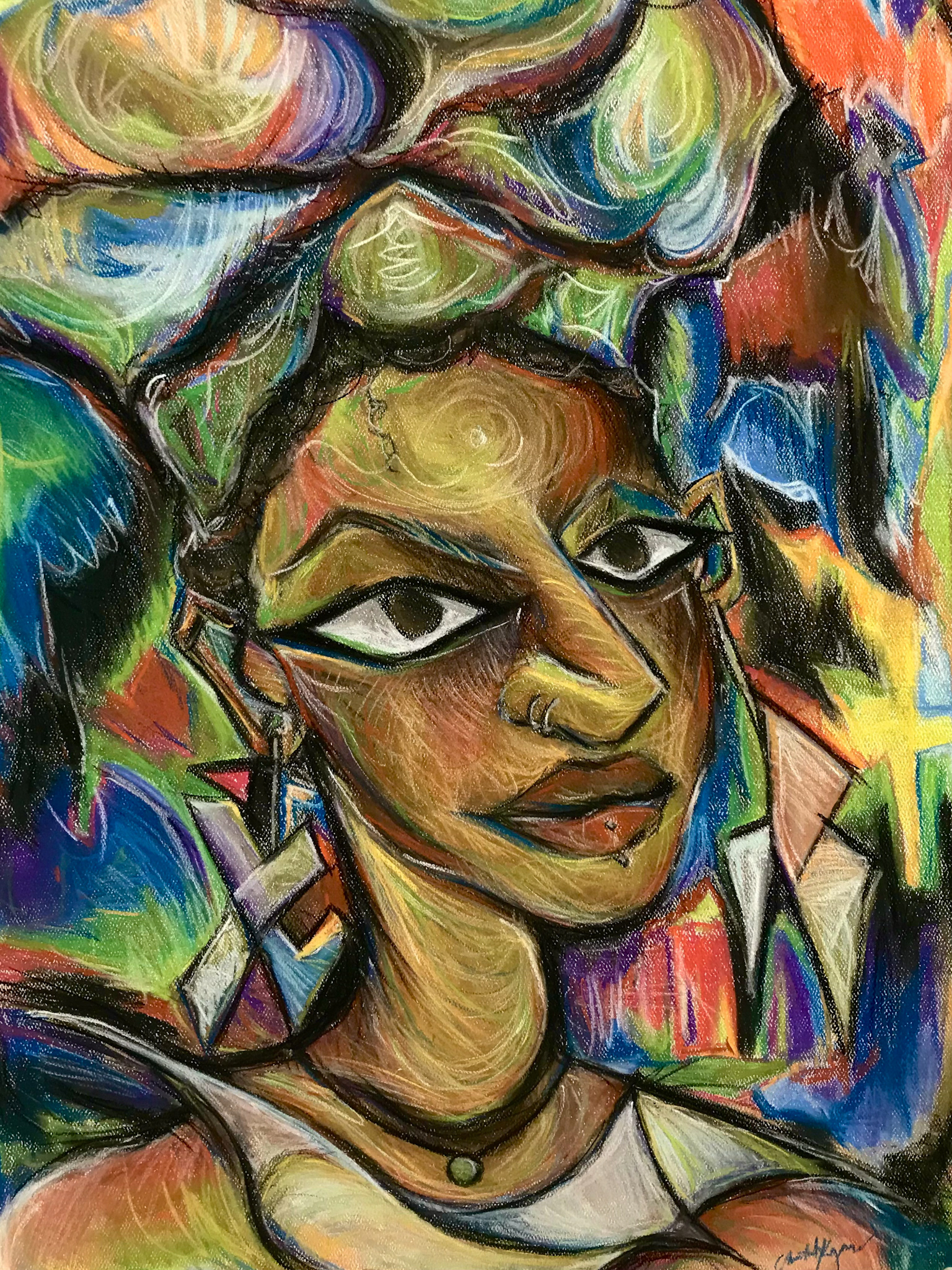 Inspired by the work of Harlem Renaissance Visual Artist, Charles Alston, The Vibrant Essence of Black Femininity boldly highlights the beauty that comes with being. It pays homage to home and sheer essence of embodying her with every aspect of our expression. This triptych is a love letter to Black women and our artistry.