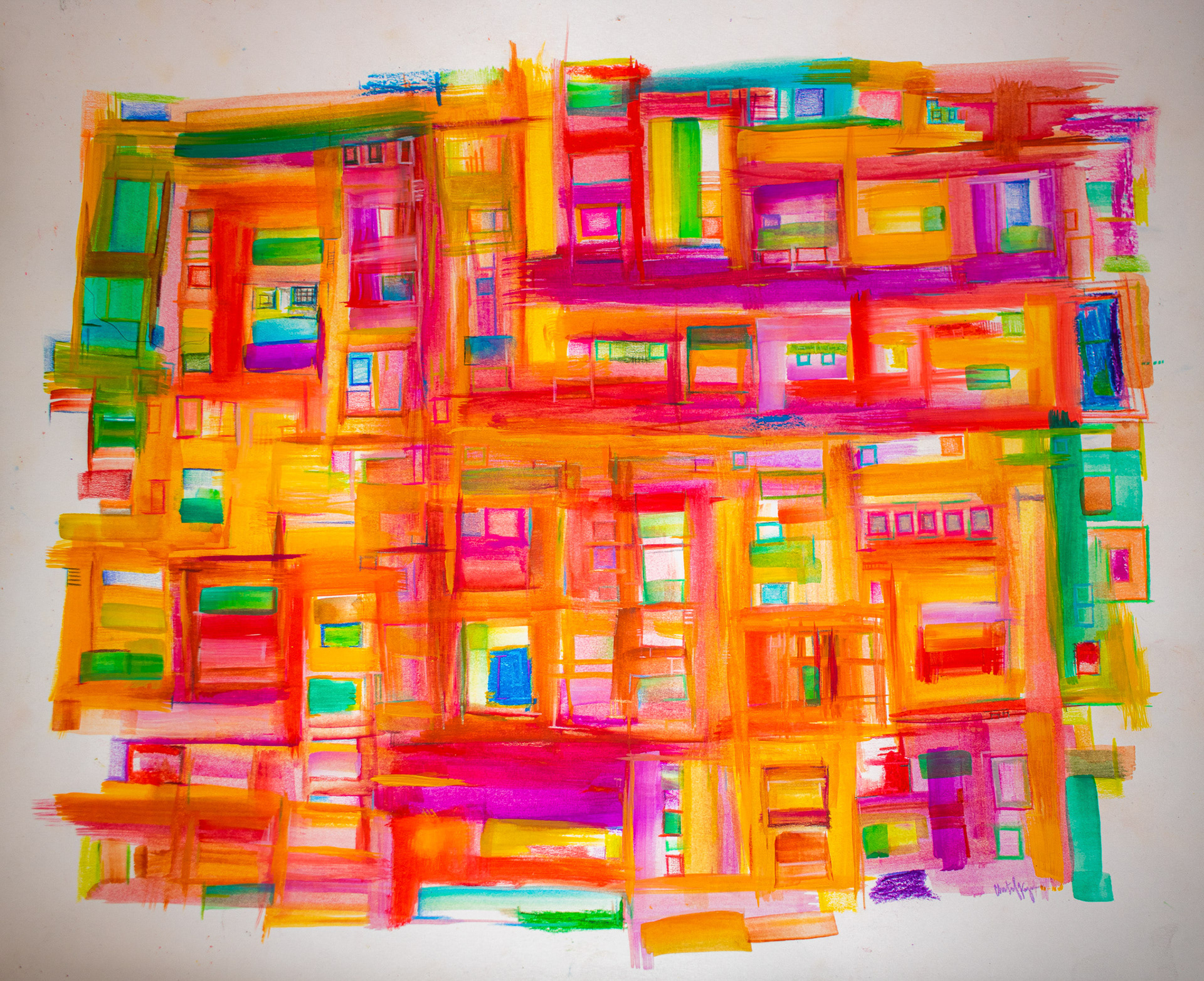 This piece captures the ideas surrounding unending youth as it was created as an ode to my eldest brother’s life. I used bright, highly saturated colors to represent the beaming nature of childhood. Eleven years, which I was graced seven in friendship with him. Sunrise, beams, suddenness, resilience, not dwelling on what is beyond your control, and keeping a lighthearted outlook on life were some lessons I learned, and words I associate with my memory of him.